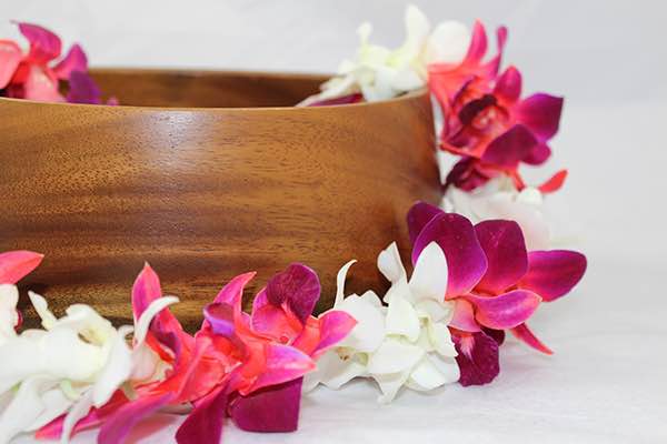 We also have natural leis made with Hawaiian grown orchids. Your color selections there are white, purple, lavender or a mix.